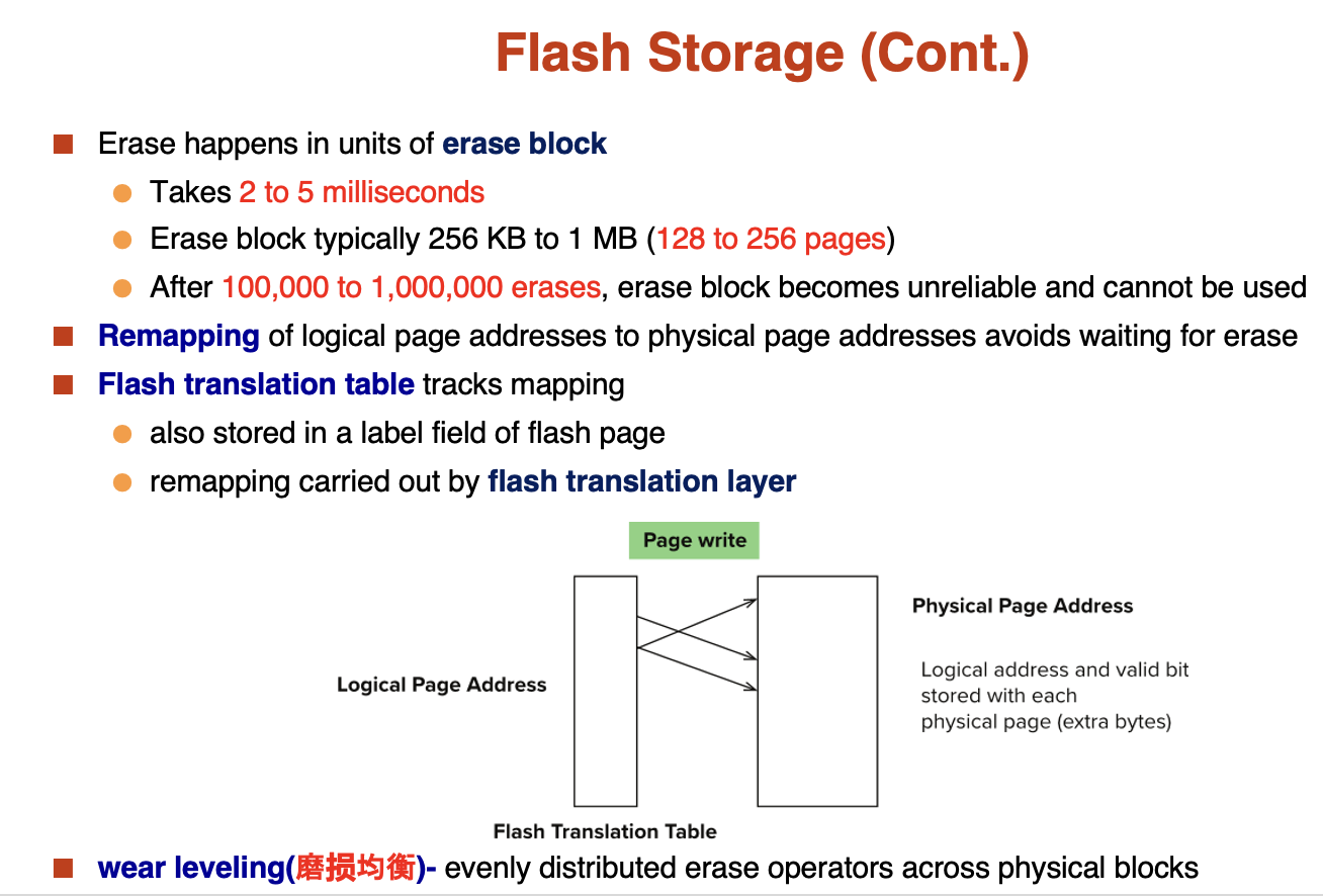 SSD(Solid State Disks): use standard block-oriented disk interfaces, but store data on multiple flash storage devices internally