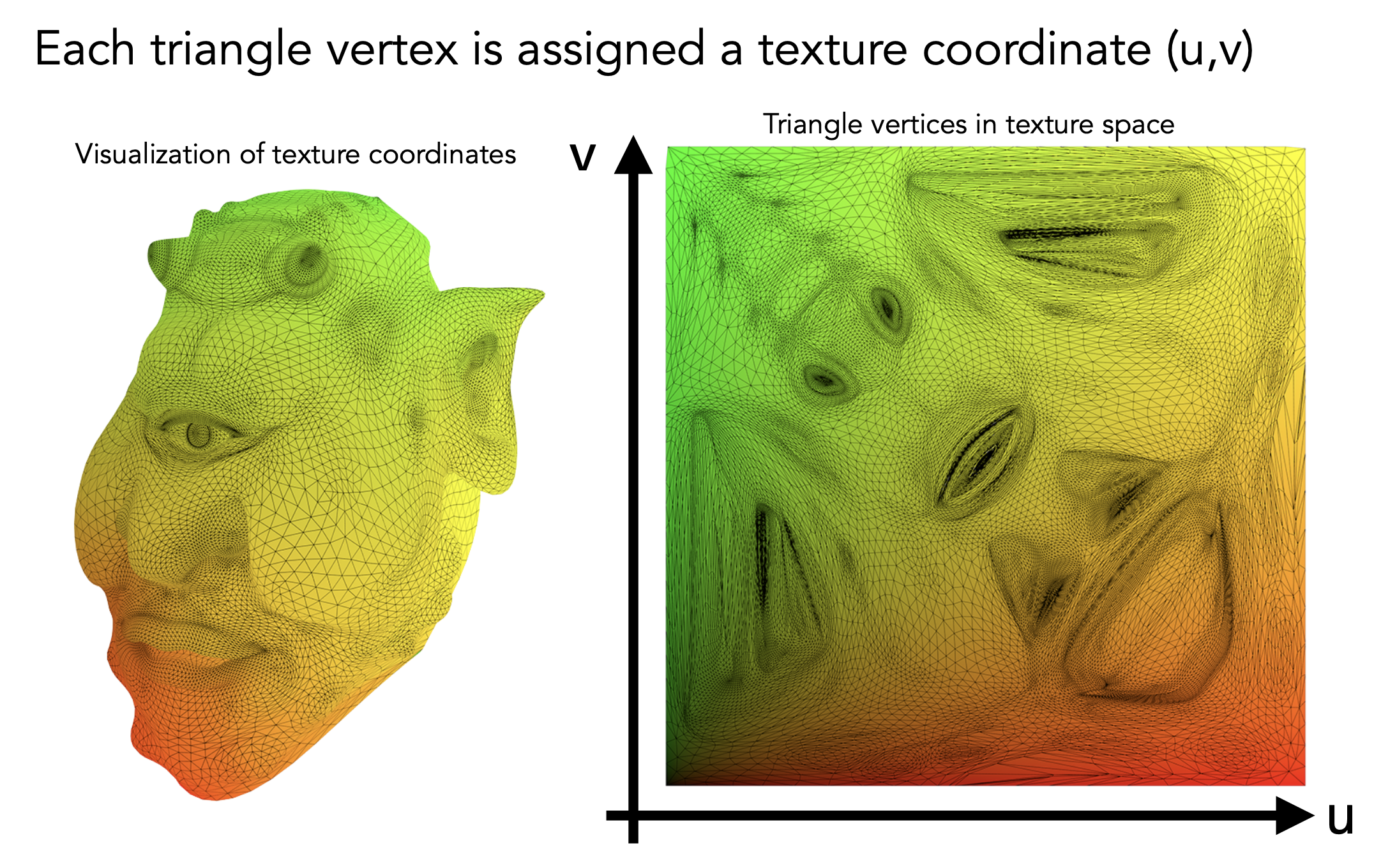 我们定义纹理是一张图(平面),我们可以把纹理覆盖在物体的表面上,这样物体的不同位置就可以有不同的材质属性了,这个就叫纹理映射。