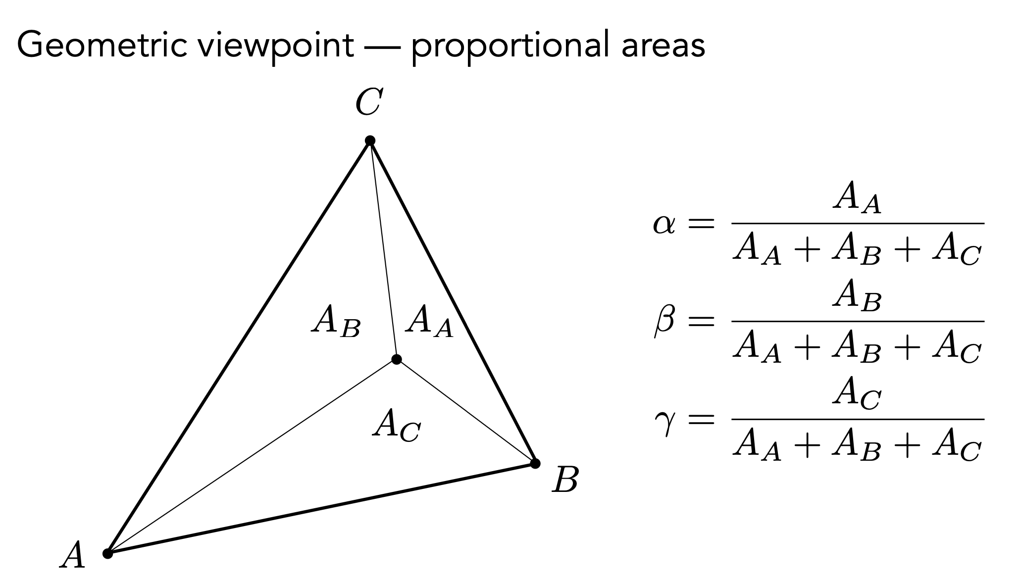 重心坐标是可以通过面积来定义的。