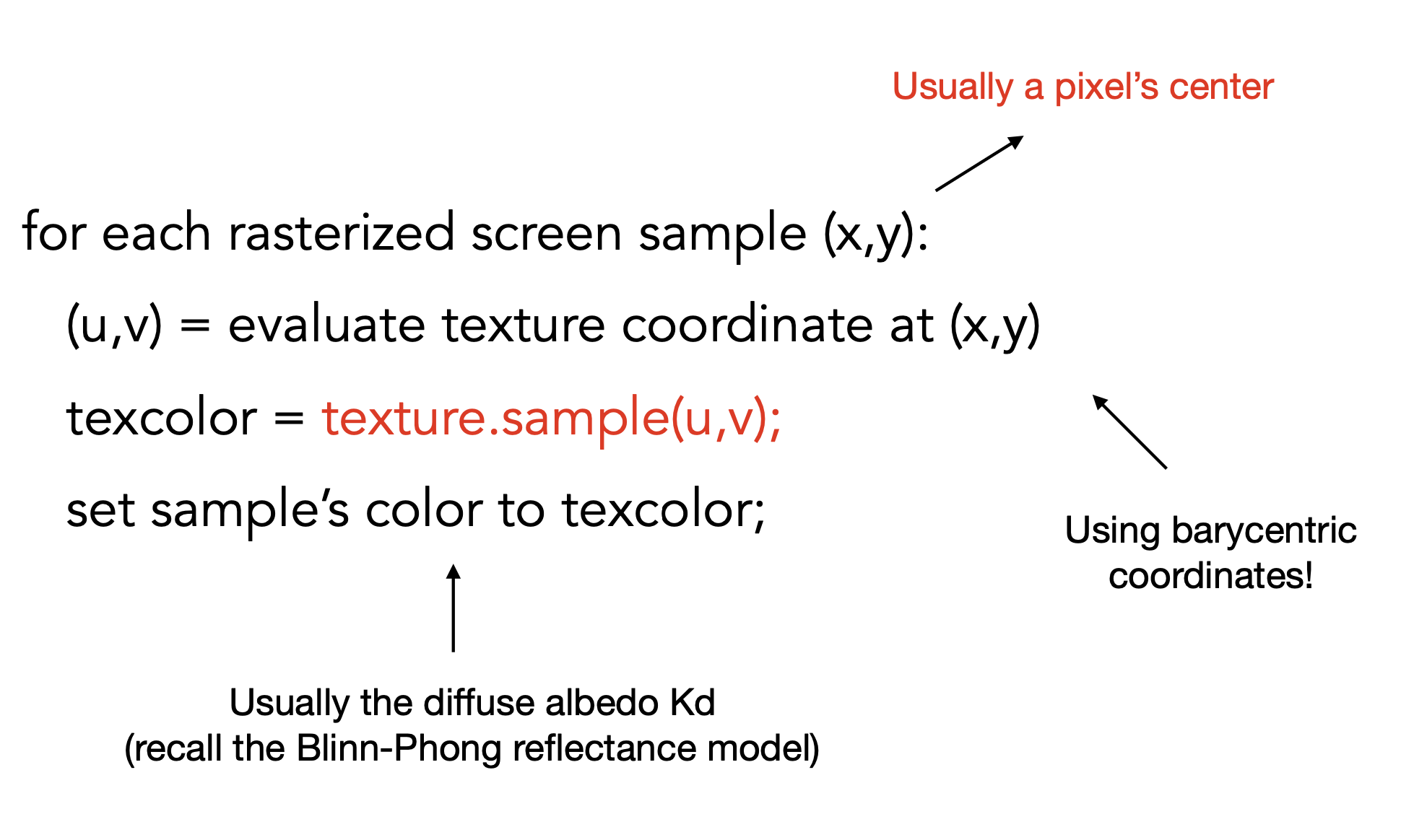 从而插值的属性 \(V = \alpha V_A + \beta V_B + \gamma V_C\)。属性可以是纹理坐标,颜色,法线等。