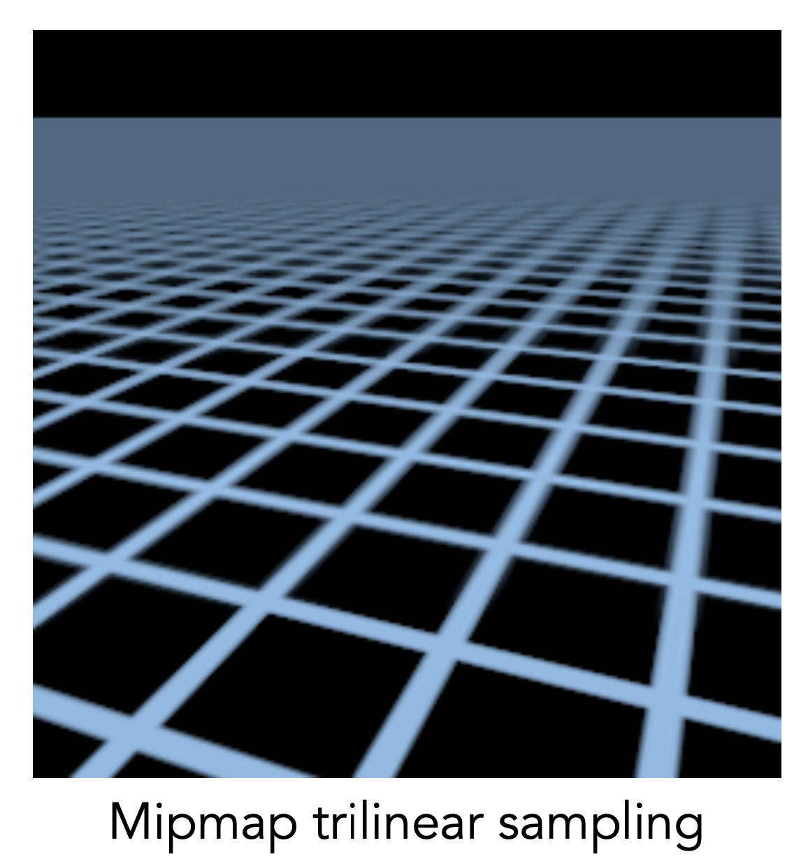 Mipmap 处理过后的图片,远处的细节完全被模糊掉了,这个叫做 Overblur。问题在于 Mipmap 只能处理正方形区域,而不能处理长方形区域。
